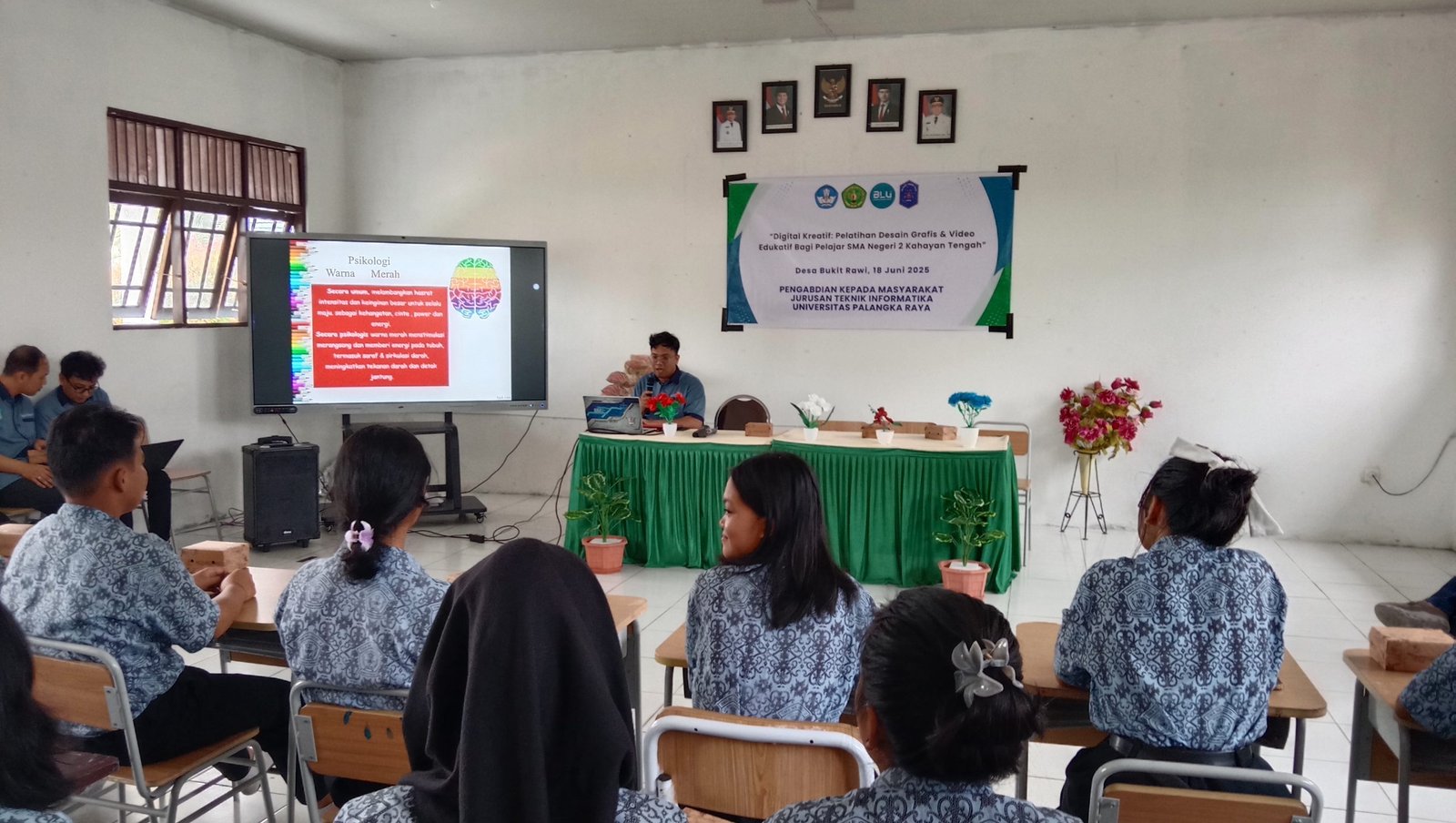 KAHAYAN TENGAH- KALTENGTERKINI.CO.ID – 18 Juni 2025 – Jurusan Teknik Informatika, Fakultas Teknik, Universitas Palangka Raya (UPR) sukses menggelar kegiatan Pengabdian kepada Masyarakat (PkM) bertajuk “Digital Kreatif: Pelatihan Desain Grafis dan Video Edukatif” yang diperuntukkan bagi siswa-siswi SMA Negeri 2 Kahayan Tengah.