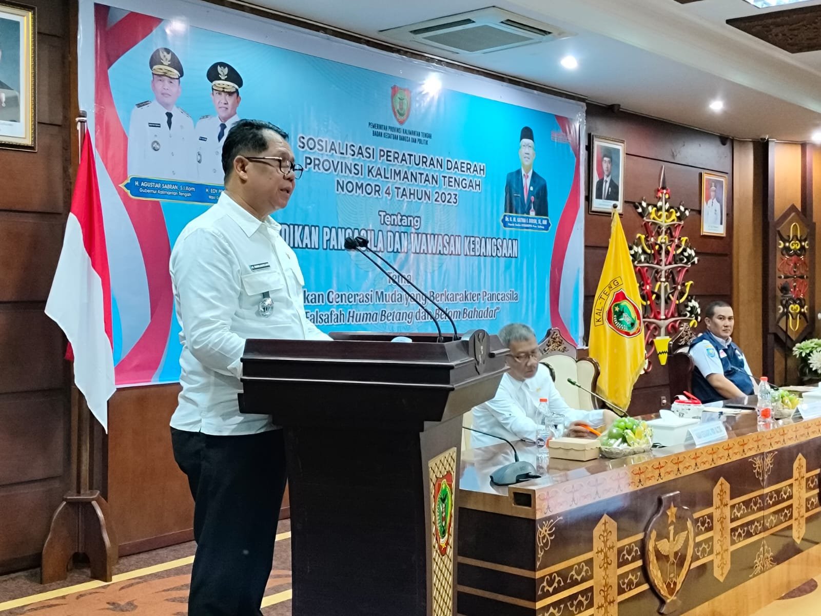 PALANGKA RAYA, KALTENGTERKINI.CO.ID – Gubernur Kalimantan Tengah melalui sebagai Staf Ahli Gubernur Bidang Pemerintah, Hukum dan Politik, H. Darliansjah, M.Si membuka kegiatan Sosialisasi Peraturan Daerah Provinsi Kalimantan Tengah Nomor 4 Tahun 2023 Tentang Pendidikan Pancasila dan Wawasan Kebangsaan.