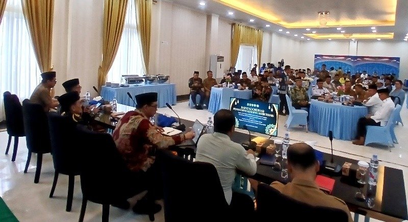 Bupati Barito Utara H Shalahuddin bersama LPTQ Provinsi Kalteng saat memimpin rapat koordinasi pemantapan kesiapan akhir teknis pelaksanaan MTQH XXXIII tingkat Provinsi Kalteng tahun 2025. ((Foto/Ist)