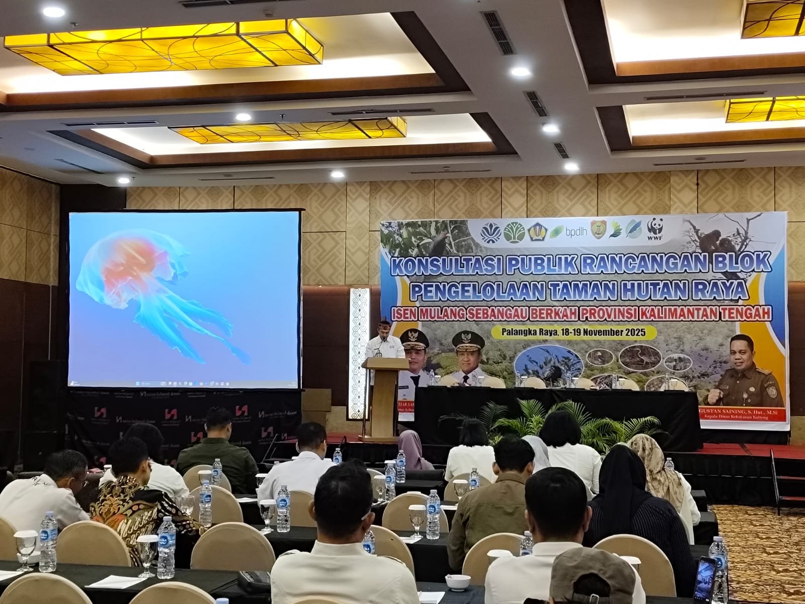 “Namun, menurut aturan UU Nomor 23 Tahun 2014 tentang Pemerintahan Daerah, kewenangan pengelolaan konservasi tetap berada pada pemerintah pusat, sementara pemerintah daerah berperan pada pengelolaan lintas kabupaten/kota,” ucapnya dalam acara Konsultasi Publik Rancangan Blok Pengelolaan Tahura Isen Mulang Sebangau Berkah yang digelar di Swiss-Belhotel Palangka Raya, 18-19 November 2025.