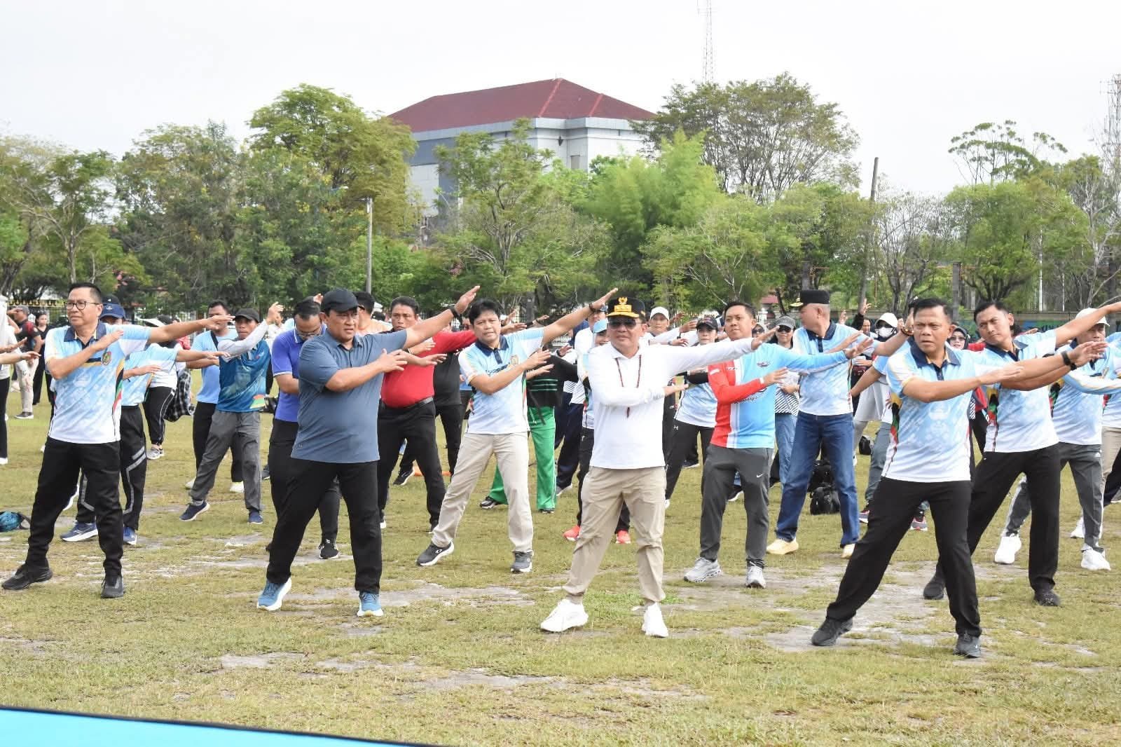 PALANGKA RAYA,KALTENGTERKINI.CO.ID – Gubernur Agustiar Sabran bersama Wakil Gubernur Edy Pratowo dan Plt. Sekretaris Daerah Leonard S. Ampung jalan sehat dan senam bersama ASN lingkup Pemerintag Provinsi Kalteng, di halaman Kantor Gubernur, Jumat (28/11/2025).