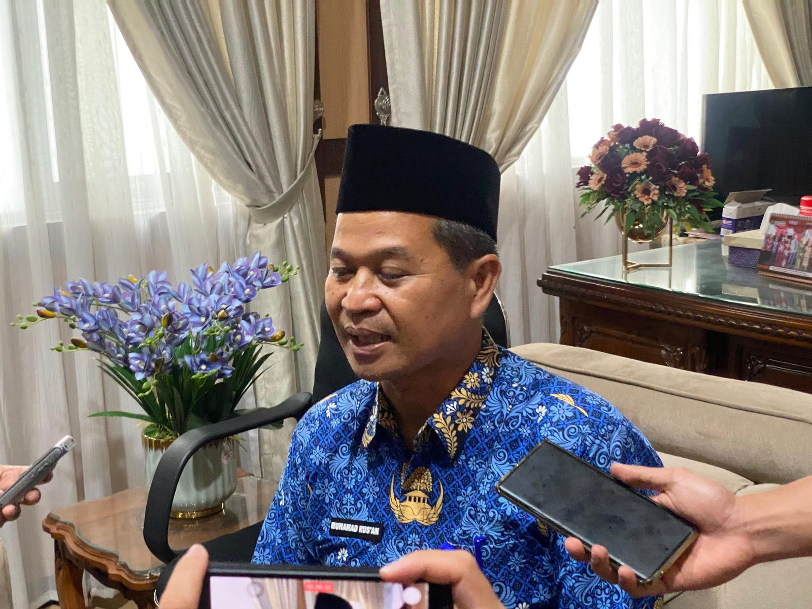 Plt. Kepala Kesbangpol Kalteng, Muhammad Rus’an, saat ditemui wartawan usai membuka Sekolah Wawasan Kebangsaan Tangkal Paham Radikalisme.(foto/mmckalteng)