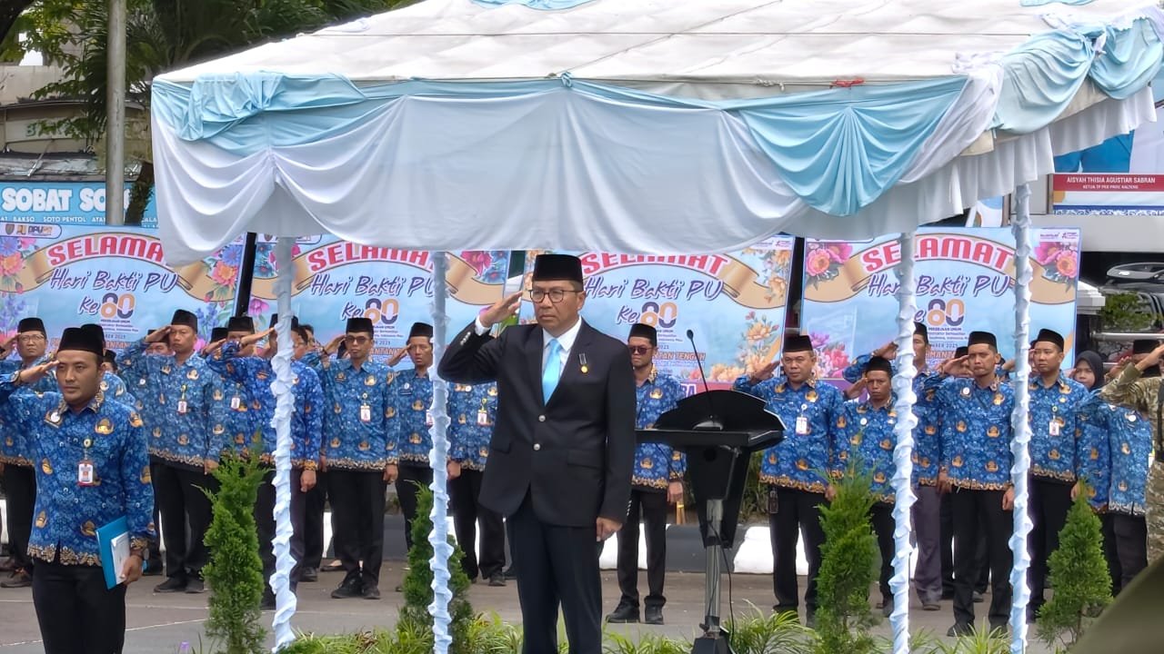 PALANGKA RAYA, KALTENGTERKINI.CO.ID – Mewakili Gubernur Kalimantan Tengah Agustiar Sabran, Plt. Sekda Provinsi Kalimantan Tengah Leonard S. Ampung memimpin Upacara Bendera dalam rangka Memperingati Hari Bakti Ke-80 Pekerjaan Umum (PU) Tahun 2025 yang digelar di Halaman Kantor Dinas Pekerjaan Umum dan Penataan Ruang Provinsi Kalimantan Tengah, Selasa (16/12/2025).