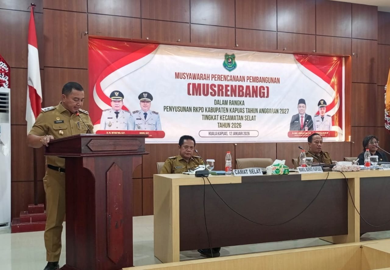 KUALA KAPUAS, KALTENGTERKINI.CO.ID — Wakil Bupati Kapuas Dodo, SP membuka Musyawarah Perencanaan Pembangunan (Musrenbang) Tingkat Kecamatan Selat di Aula Kantor Bapperida Kuala Kapuas, Senin, 12 Januari 2026.
