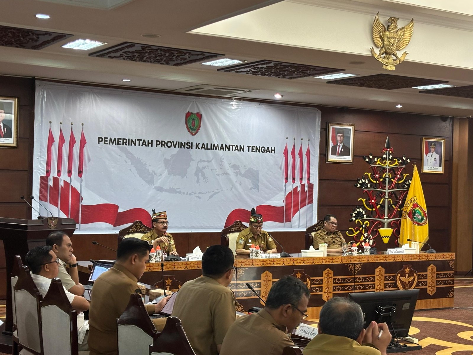 Pembahasan tersebut dilakukan melalui rapat yang membahas petunjuk pelaksanaan (juklak) dan petunjuk teknis (juknis), sekaligus mengevaluasi progres validasi data calon penerima manfaat, di Aula Eka Hapakat kantor Gubernur Senin (26/1/2026)