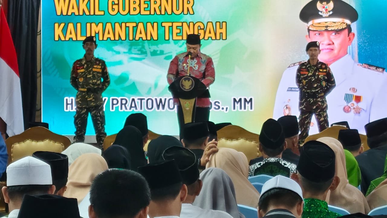 Wakil Gubernur Kalteng H Edy Pratowo saat menyampaikan sambutan pada acaa Pelantikan Persatuan Guru Nahdlatul Ulama serta Pengurus Jaringan Kyai Santri Nasional Kalimantan Tengah. (Foto:Aryan)